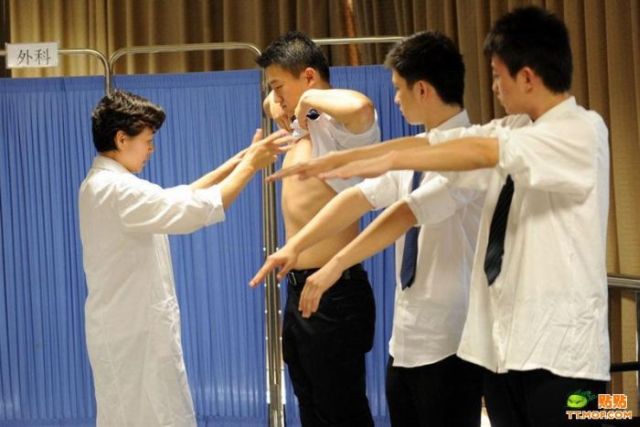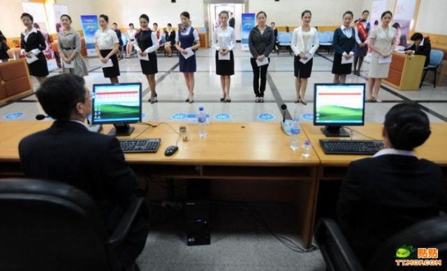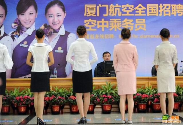 中華人民共和国、福建省廈門市(アモイ)を本拠地としている廈門航空(アモイ航空)の客室乗務員の面接風景を撮影した写真です。中国でも客室乗務員は人気職業の一つで航空業界急成長が注目され求人倍率も年々上昇しているそうです。写真では緊張した面持ちの女性や集団面接風景、健康診断等が写されており、リアルタイムに裏でポイント付けられているのが結構生々しい印象です。