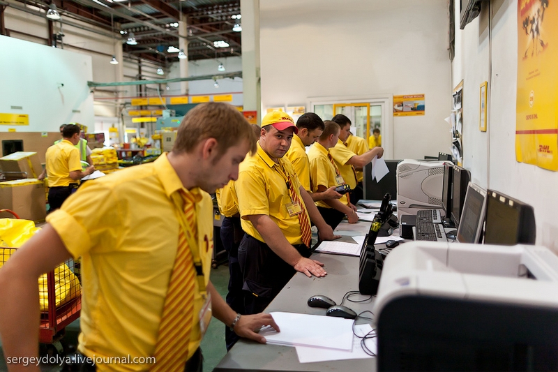 国際航空貨物輸送(クーリエ)大手『DHL』ロシア支社のオフィス、仕分・集配業務現場を撮影した写真です。ロシア支社は1984年モスクワに設立され、ロシアとヨーロッパの間だけでも毎日32万トンの貨物を輸送しています。国内には自社及び代理店事務所が600都市に150店舗以上あり、郵送が不安定なロシア、CIS諸国の速達市場では比較的高い評価を受けています。写真には配送・集配センターで仕分けを行う様子やコールセンター、セントラルオフィス等で働く社員の他、ロシア支社のみが運用するDHLカラーのTu-204Cが写されています。