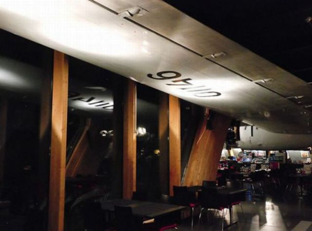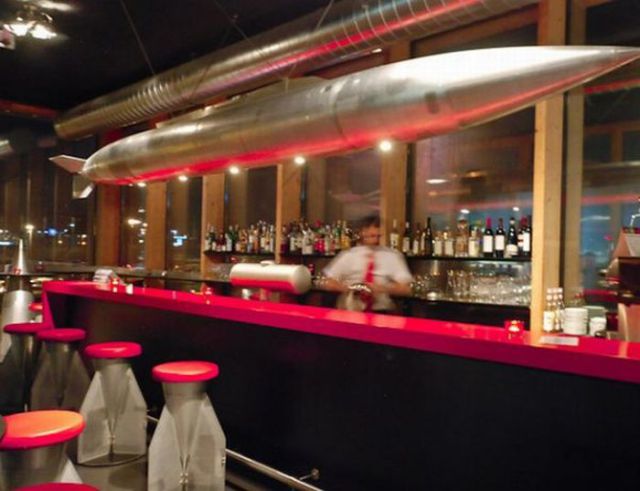 スイス、チューリッヒ国際空港に本物のイリューシン IL-14旅客機を店内に展示し、機内でも食事が楽しめるユニークなレストラン・バー「ランウェイ34」の写真です。展示機であるIL-14は1957年に生産、登録番号:01146としてソ連空軍で運用され1992年ソ連崩壊後民間に売却。2002年までロシアで現役だった機体を元スイス航空パイロットのオーナーが入手し、レストランの目玉としました。格納庫を改造した店内は航空機の座席や燃料タンク等様々なオブジェがあるバーや本格的な夜景が堪能できるアビエイターラウンジ、旅客機が間近で見れるテラス、IL-14の機内で葉巻を吸いながら料理が楽しめるスモーカーズラウンジで構成されています。空港から車で5分程の外れにありますが、航空ファンはもちろん飛行機に興味の無い方でもとても楽しめるレストランとして人気があり、夜は比較的混むようです。平日はランチも実施、スイス料理の他アジア系料理も用意しているそうです。