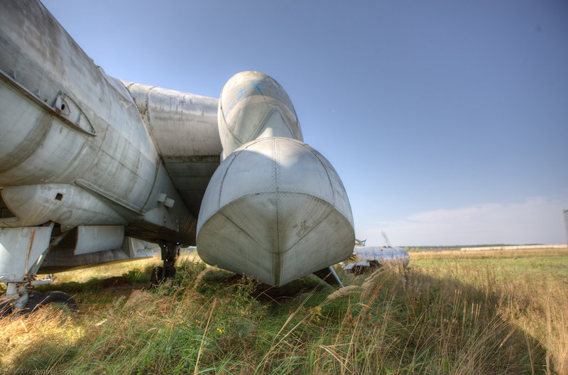 モスクワ郊外にあるロシア最大の航空博物館「モニノ空軍博物館」に長年放置されているベリエフ『VVA-14(14M1P)』を近距離で撮影した写真です。VVA-14は冷戦のさなか、戦略弾道ミサイル(ポラリス)を搭載した米原子力潜水艦に対抗する水陸両用対潜哨戒飛行艇として1970年台に研究が開始。設計はイタリア人亡命技術者ロバート・L・バルティーニが中心となり飛行艇開発を得意とするベリエフ設計局と共同で開発されました。計画では3機が予定されプロトタイプのM1、機種にエンジンを追加し離水能力を高めたM2、フライ・バイ・ワイヤ技術と対潜武装を搭載した実戦タイプM3が計画されていました。M1は1972年9月4日初飛行に成功、試験結果を踏まえM2仕様に改修した14M1Pで表面効果試験に移行予定でしたが、完成前の1974年にバルティーニは亡くなってしまいます。中心人部を失った後も試験は継続され1977年まで行われましたが、目標性能を出せず、問題も多かったことから最終的にプロジェクトは解体、VVA-14の技術は後のベリエフ、エクラノプランに一部引き継がれることになります。機体は現在も見学できますが、奥まった場所にあるため近距離での撮影は難しいようです。写真では脱落した主翼やエンジンなどが確認でき、長年放置されている為劣化している様子が確認できます。