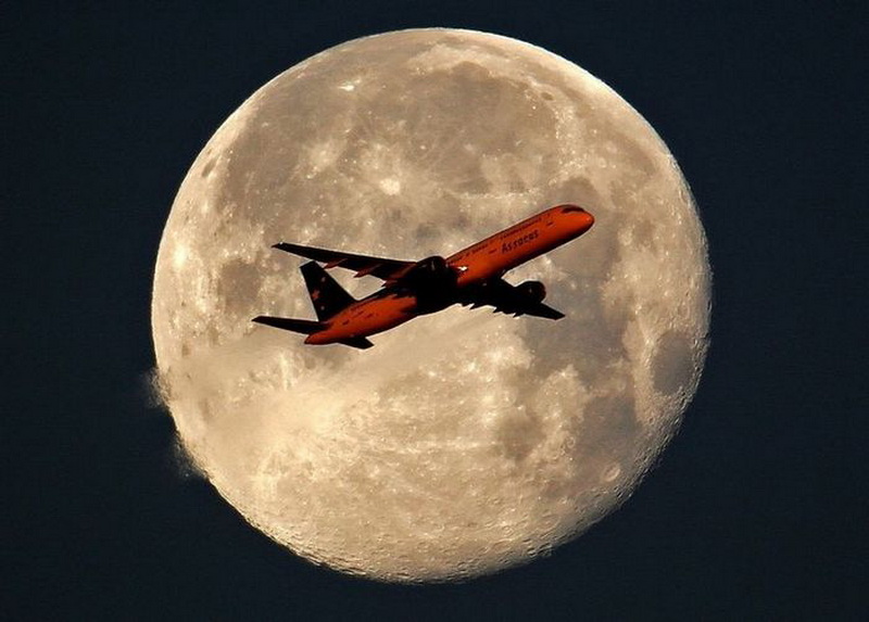 Via:Самолеты на фоне луны и солнца