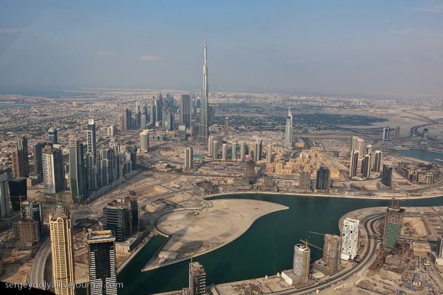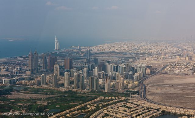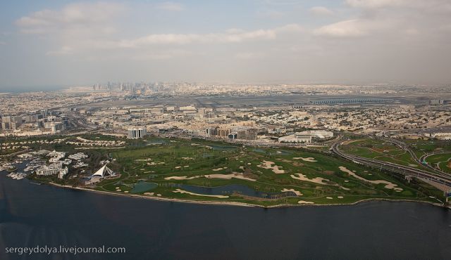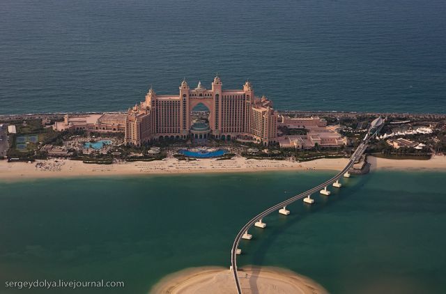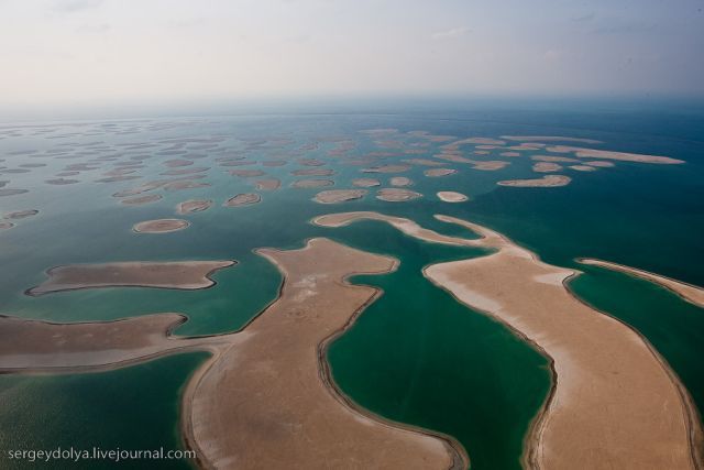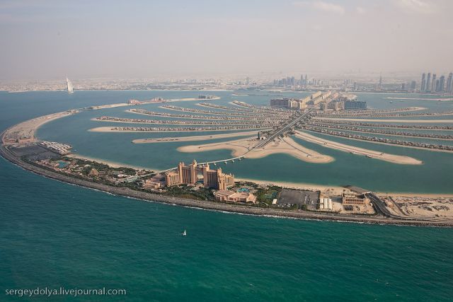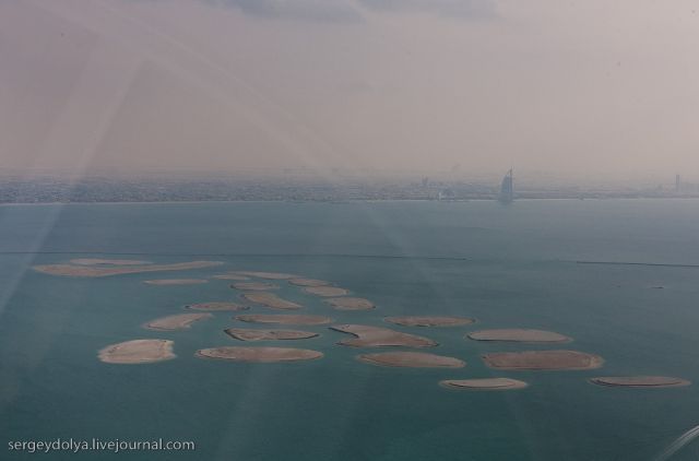中東屈指の世界都市へと急成長し今も変化し続ける都市『ドバイ』を上空から撮影した写真です。人工衛星から見える唯一の人工島群「パーム・アイランド」、巨大人造湖の中の人工島リゾート「ジュメイラ・アイランズ」、世界地図を模した人工島群「ザ・ワールド」、世界一高い超高層ビル「ブルジュ・ハリーファ(ブルジュ・ドバイ)」等が確認できます。写真は2009年に撮影されたもので、現在ではまた違った光景となっていると予想されます。
