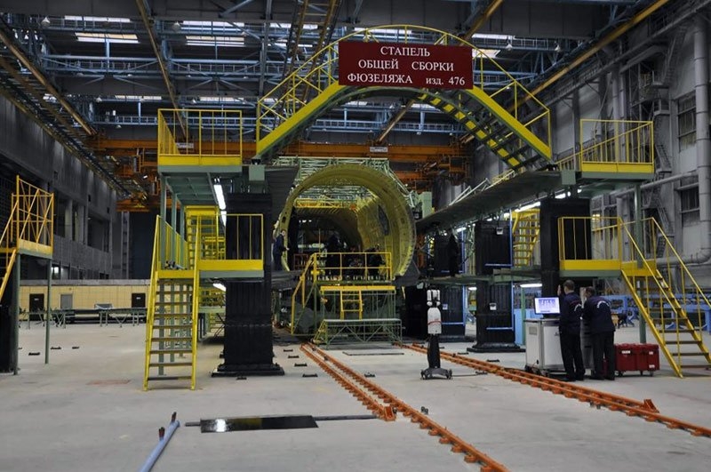 イリューシン設計局が開発した大型ジェット輸送機「Il-76」最新派生型『Il-476(Il-76MD-90A)』がアビアスター社のウリヤノフスク航空機工場で最終組立を行っている写真です。Il-476は新開発された主翼と、燃費・推力が改善された「PS-90A-76」エンジンによりペイロードと航続距離が増加。アビオニクスとコクピットの他、広範囲に設計変更・改修が加えられ性能が大幅に上昇しており、ほぼ別の機体と言ます。開発・製造はイリューシンではなくソ連時代よりAn-124など大型機の製造を行ってきたアビアスター社(Aviastar SP)が行ており、同社はソ連崩壊前のウリヤノフスク航空工業複合体が母体となったメーカーです。2012年9月22日には初飛行に成功、中国、インド、Il-76の運用企業へ売り込みを行る他、Il-476をベースに空中給油機や早期警戒機の開発計画も行っています。