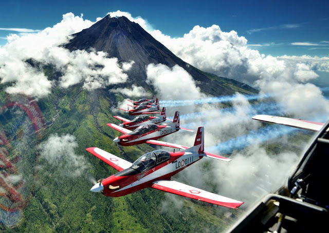 インドネシア空軍アクロバットチーム『ジュピター(Jupiter)』プロモーション動画。ジュピターの名を持つチームは1996年、BAEホークMk.53ジェット練習機8機で結成され、国内で式典などに参加し海外遠征も期待されていました。1998年アジア通貨危機を引き金とする反政府運動と暴動で初代チームは解散しており、現チームは2008年に韓国製ターボプロップ練習機「KT-1B(ウンビ)」4機により新しく再形成された2代目です。アクロバット技術はオーストラリア空軍「ルーレッツ」のトレーニングプログラムを受けており、パイロットは全て空軍の教官が務めている為演目技術は高く近年はASEAN諸国のエアショーに遠征も行っています。2011年には6機に増加しインドネシアの国旗である赤と白のカラーリングに一新しています。